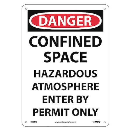 NMC D163RB OSHA Sign, Legend "DANGER - CONFINED SPACE HAZARDOUS ATMOSPHERE ENTER BY PERMIT ONLY", 10" Length x 14" Height, Rigid Plastic, Red/Black on White