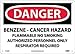 - Header "DANGER" and legend "BENZENE CANCER HAZARD FLAMMABLE NO SMOKING AUTHORIZED PERSONNEL ONLY RESPIRATOR REQUIRED"