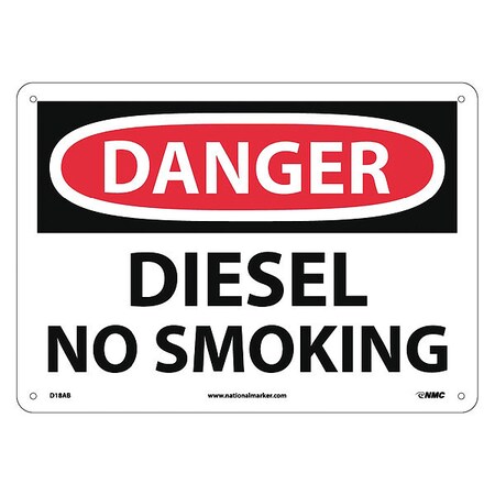 NMC D18AB DANGER - DIESEL NO SMOKING Sign - 14 in. x 10 in., Black Text on White, Aluminum Danger Sign with Graphics
