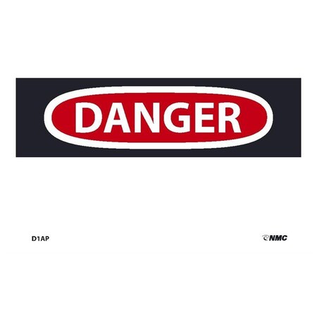 NMC D1AP OSHA Sign, Legend "DANGER", 5" Length x 3" Height, Pressure Sensitive Adhesive Vinyl, Black/Red on White (Pack of 5)