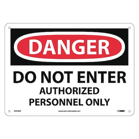 NMC D200AB OSHA Sign, "DANGER DO NOT ENTER AUTHORIZED PERSONNEL ONLY", 14" Width x 10" Height, Aluminum, Black/Red On White