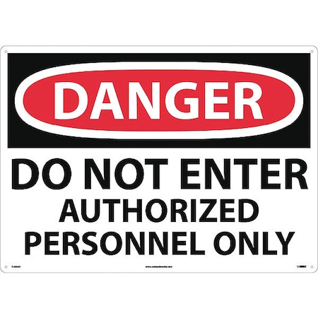 NMC D200AD OSHA Sign, Legend "DANGER - DO NOT ENTER AUTHORIZED PERSONNEL ONLY", 28" Length x 20" Height, Aluminum, Black on White