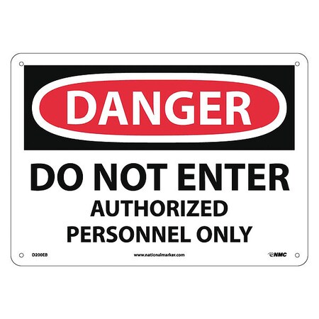 NMC D200EB OSHA Sign, Legend "DANGER - DO NOT ENTER AUTHORIZED PERSONNEL ONLY", 14" Length x 10" Height, Fiberglass, Black on White