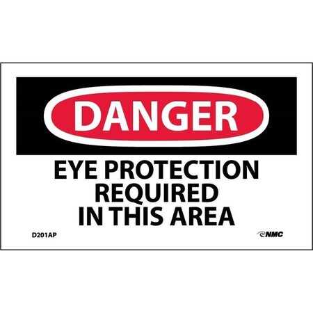 NMC D201AP OSHA Sign, Legend "DANGER - EYE PROTECTION REQUIRED IN THIS AREA", 5" Length x 3" Height, Pressure Sensitive Vinyl, Black/Red on White (Pack of 5)