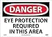 NMC D201PB DANGER - EYE PROTECTION REQUIRED IN THIS AREA Sign - 14 in. x 10 in. PS Vinyl Danger Sign, Black/White Text on White/Red Base