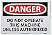 | Feature | Header "DANGER" and legend "DO NOT OPERATE THIS MACHINE UNLESS AUTHORIZED" |