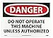 | Feature | Header "DANGER" and legend "DO NOT OPERATE THIS MACHINE UNLESS AUTHORIZED" |