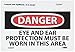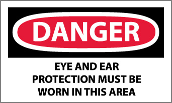 - Header "DANGER" and Legend "EYE AND EAR PROTECTION MUST BE WORN IN THIS AREA"
