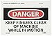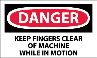 - Header "DANGER" and Legend "KEEP FINGERS CLEAR OF MACHINE WHILE IN MOTION"