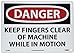 | Feature | Header "DANGER" and Legend "KEEP FINGERS CLEAR OF MACHINE WHILE IN MOTION" |