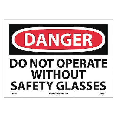 DANGER, DO NOT OPERATE WITHOUT SAFETY GLASSES, 10X14, PS VINYL