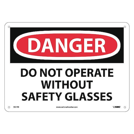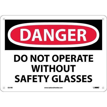 NMC D21RB DANGER - DO NOT OPERATE WITHOUT SAFETY GLASSES Sign - 14in. x 10in. Rigid Plastic Danger Signage with Black/Red on White