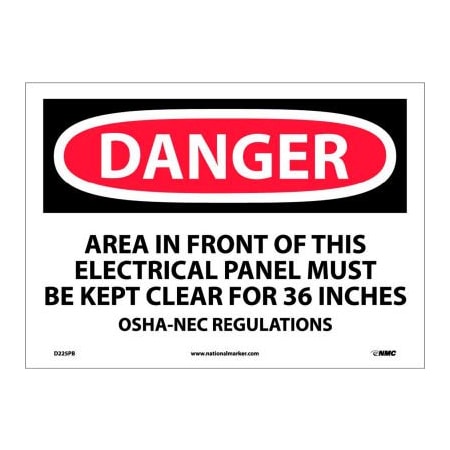 NMC D225PB OSHA Sign, Legend "DANGER - AREA IN FRONT OF THIS ELECTRICAL PANEL...", 14" Length x 10" Height, Pressure Sensitive Vinyl, Red/Black on White