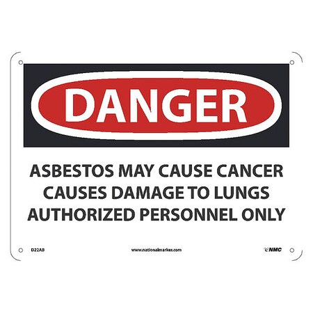 NMC D22AB National Marker Danger Asbestos Sign -May Cause Cancer Causes Damage to Lungs Authorized Personnel Only, 10 Inches x 14 Inches, 040 ALUM