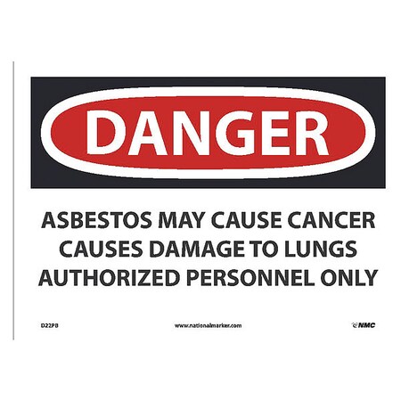 OSHA Sign D22. Legend: Danger Asbestos May Cause Cancer Causes Damage To Lungs Authorized Personnel Only