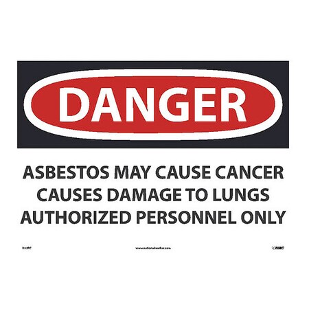 NMC D22PC National Marker Danger Asbestos Sign -May Cause Cancer Causes Damage to Lungs Authorized Personnel Only, 14 Inches x 20Inches, Ps Vinyl