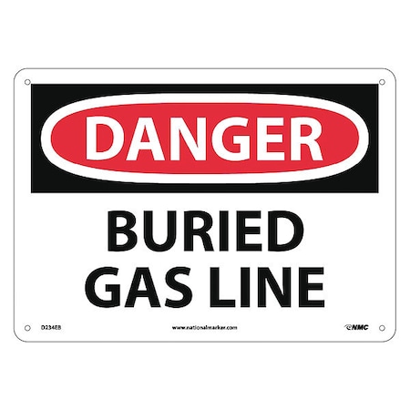 NMC D234EB OSHA Sign, Legend "DANGER - BURIED GAS LINE", 14" Length x 10" Height, Fiberglass, Red/Black on White