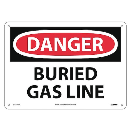 NMC D234RB OSHA Sign, Legend "DANGER - BURIED GAS LINE", 14" Length x 10" Height, Rigid Plastic, Red/Black on White
