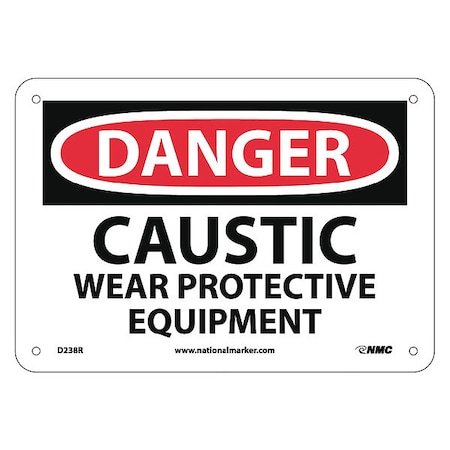 NMC D238R DANGER - CAUSTIC WEAR PROTECTIVE EQUIPMENT Signage - 10 in. x 7 in. Rigid Plastic Danger Sign, Black/White Text on White/Red Base