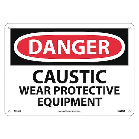 NMC D238RB DANGER - CAUSTIC WEAR PROTECTIVE EQUIPMENT Signage - 14 in. x 10 in. Rigid Plastic Danger Sign, Black/White Text on White/Red Base