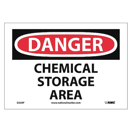 NMC D239P OSHA Sign, Legend "DANGER - CHEMICAL STORAGE AREA", 10" Length x 7" Height, Pressure Sensitive Vinyl, Red/Black on White