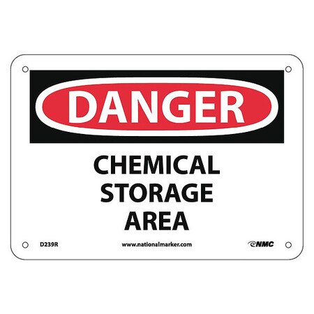 NMC D239R OSHA Sign, Legend "DANGER - CHEMICAL STORAGE AREA", 10" Length x 7" Height, Rigid Plastic, Red/Black on White