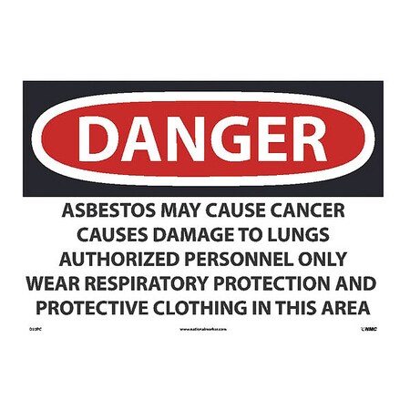 NMC D23PC National Marker Danger Asbestos Sign - May Cause Cancer Causes Only Wear Respiratory Protection, 14 Inches x 20Inches, Ps Vinyl