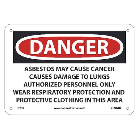 NMC D23R National Marker Danger Asbestos Sign - May Cause Cancer Causes Only Wear Respiratory Protection, 7 Inches x 10Inches, Rigid Plastic