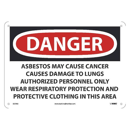 NMC D23RB National Marker Danger Asbestos Sign - May Cause Cancer Causes Only Wear Respiratory Protection, 10 Inches x 14 Inches, Rigid Plastic