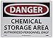 | Feature | Header "DANGER" and legend "CHEMICAL STORAGE AREA AUTHORIZED PERSONNEL ONLY" |