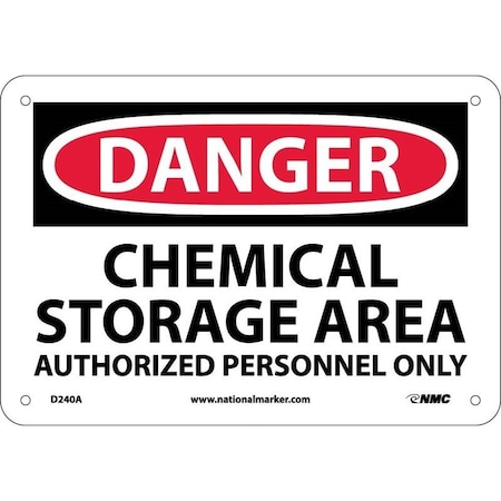 NMC D240RB DANGER - CHEMICAL STORAGE AREA - AUTHORIZED PERSONNEL ONLY – 14 in. x 10 in. Rigid Plastic Danger Sign with White/Black Text on Red/White Base