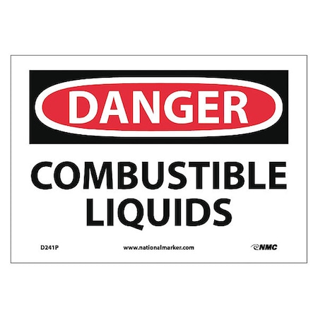 NMC D241P OSHA Sign, Legend "DANGER - COMBUSTIBLE LIQUIDS", 10" Length x 7" Height, Pressure Sensitive Vinyl, Red/Black on White
