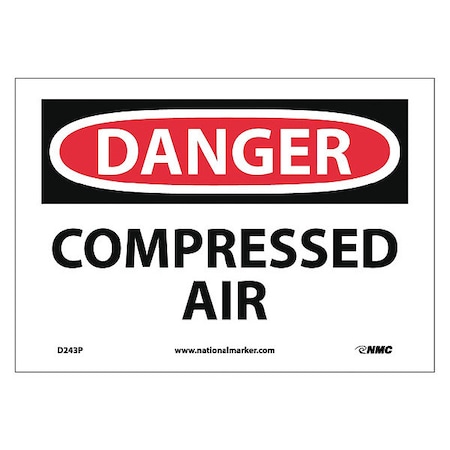 NMC D243P OSHA Sign, Legend "DANGER - COMPRESSED AIR", 10" Length x 7" Height, Pressure Sensitive Vinyl, Red/Black on White