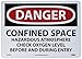 - Header "DANGER" and legend "CONFINED SPACE HAZARDOUS ATMOSPHERE CHECK OXYGEN LEVEL BEFORE AND DURING ENTRY"