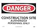 | Feature | Header "DANGER" and legend "CONSTRUCTION SITE AUTHORIZED PERSONNEL ONLY" |