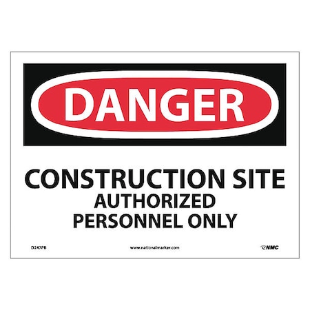 NMC D247PB DANGER - CONSTRUCTION SITE AUTHORIZED PERSONNEL ONLY Sign - 14 in. x 10 in. PS Vinyl Danger Sign, Black/White Text on White/Red Base