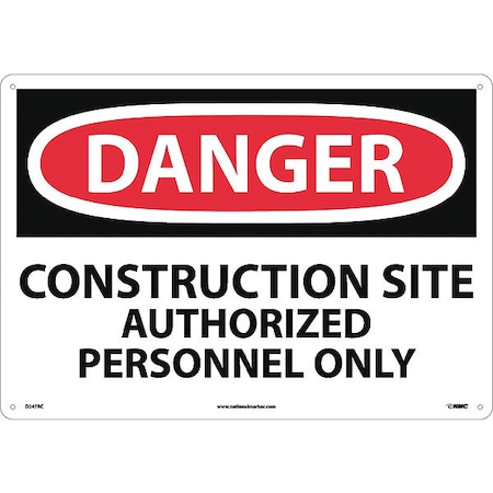 NMC D247RC OSHA Sign, Legend "DANGER - CONSTRUCTION SITE AUTHORIZED PERSONNEL ONLY", 20" Length x 14" Height, Rigid Plastic, Red/Black on White