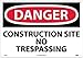 - Header "DANGER" and legend "CONSTRUCTION SITE NO TRESPASSING"