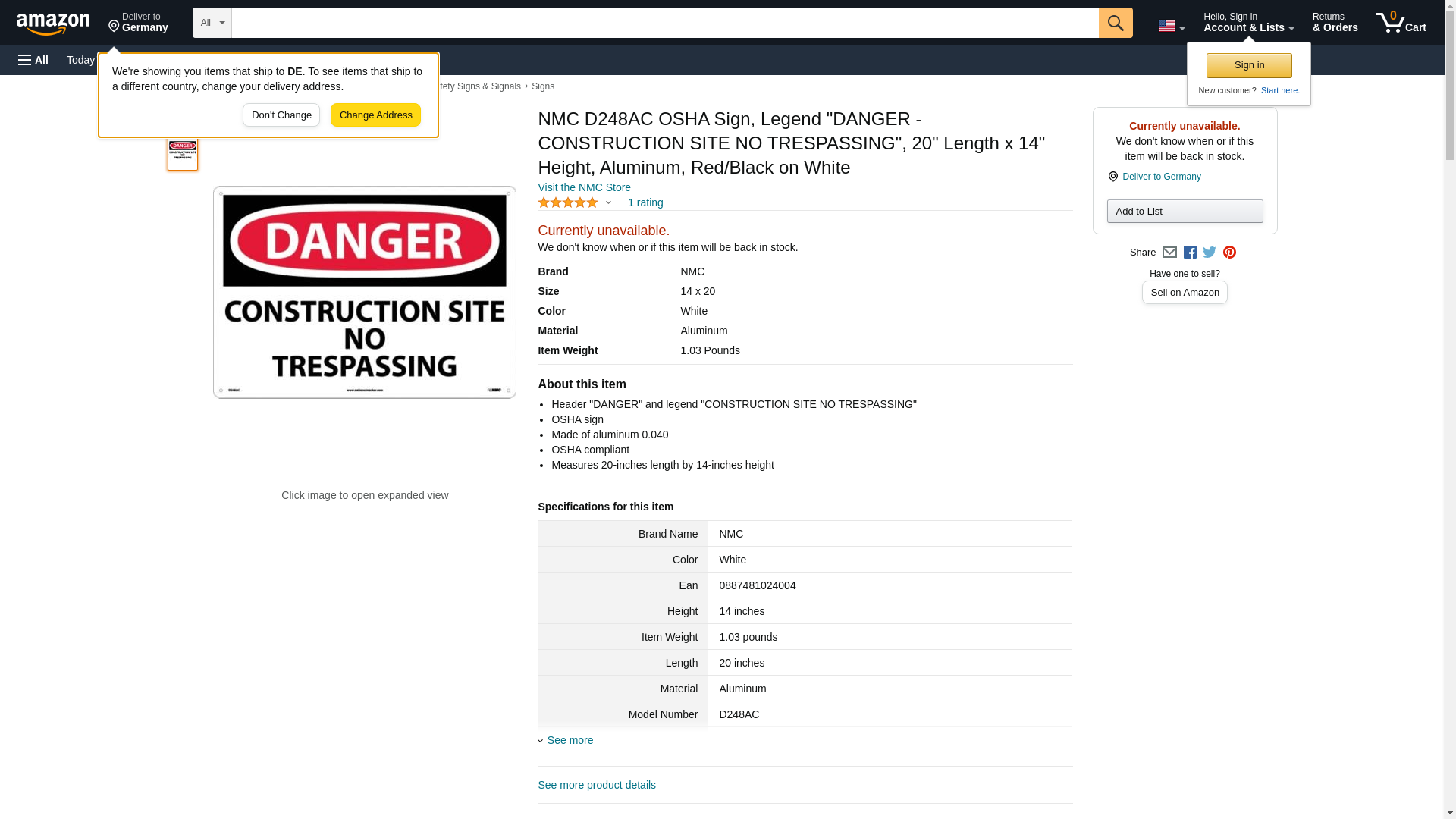 NMC - National Marker Company Danger, Construction Site No Trespassing, 14X20, .040 Alum OSHA Signs OSHA signs are the perfect way to alert your employees and guests when a hazard is present in your facility. Keep your facility safe, buy an OSHA regulated sign today and prevent an accident tomorrow. These OSHA signs comply with OSHA 29 CFR 1910.145