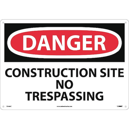 NMC D248AC OSHA Sign, Legend "DANGER - CONSTRUCTION SITE NO TRESPASSING", 20" Length x 14" Height, Aluminum, Red/Black on White