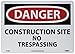 - Visibility: the simple and clear signage with legend DANGER - CONSTRUCTION SITE NO TRESPASSING Sign is legible and noticeable even from a certain distance. This OSHA signage can be placed across construction sites and busy premises