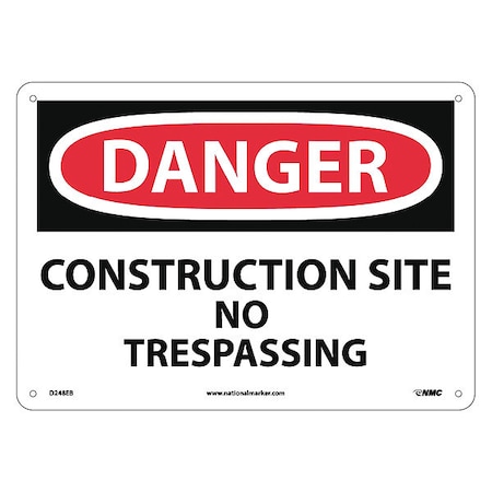 NMC D248EB DANGER - CONSTRUCTION SITE NO TRESPASSING Sign - 14 in. x 10 in. Fiberglass Danger Signage, Black/White Text on White/Red Base