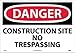 - Header "DANGER" and legend "CONSTRUCTION SITE NO TRESPASSING"