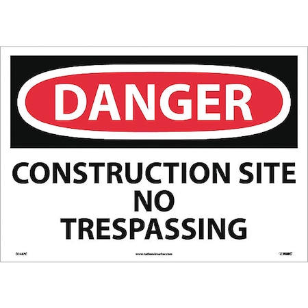 NMC D248PC OSHA Sign, Legend "DANGER - CONSTRUCTION SITE NO TRESPASSING", 20" Length x 14" Height, Pressure Sensitive Vinyl, Red/Black on White
