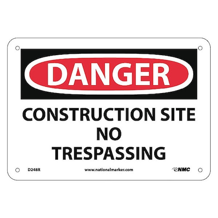 NMC D248R DANGER - CONSTRUCTION SITE NO TRESPASSING Sign - 10 in. x 7 in. Rigid Plastic, Danger Signage, Black/White Text on White/Red Base, 7 x 10