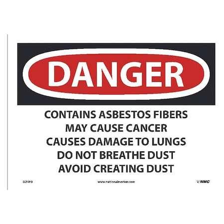 OSHA Sign D24. Legend: Label, Danger Contains Asbestos Fibers May Cause Cancer Causes Damage To Lungs Do Not Breathe Dust Avoid Creating Dust