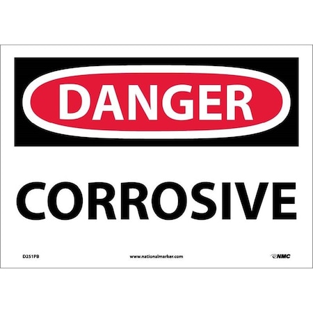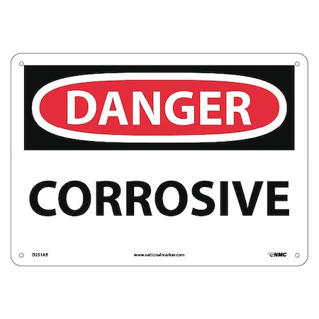 NMC D251AB OSHA Sign, Legend "DANGER - CORROSIVE", 14" Length x 10" Height, Aluminum, Black on White