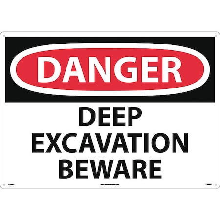 NMC D256AD OSHA Sign, Legend "DANGER - DEEP EXCAVATION BEWARE", 28" Length x 20" Height, Aluminum, Black on White