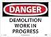 NMC D257RB DANGER - DEMOLITION WORK IN PROGRESS Signage - 14 in. x 10 in. Rigid Plastic Danger Sign, Black/White Text on White/Red Base