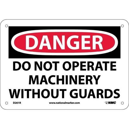 NMC D261AB OSHA Sign, Legend "DANGER - DO NOT OPERATE MACHINERY WITHOUT GUARDS", 14" Length x 10" Height, Aluminum, Black on White